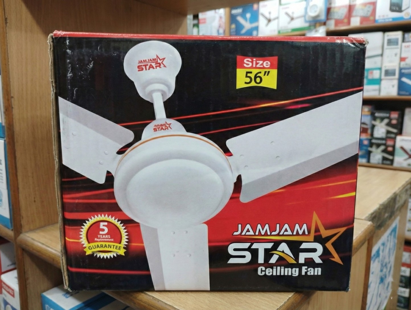 The Jam Jam Star 56"/48"/36" Ceiling Fan is a high-performance cooling solution designed for larger rooms, providing expansive air coverage and superior circulation. It features a robust motor that ensures consistent airflow while maintaining energy efficiency, making it an ideal choice for living rooms or spacious offices. Built for durability, this fan is easy to install and comes with a 5-year replacement guarantee for long-term peace of mind.