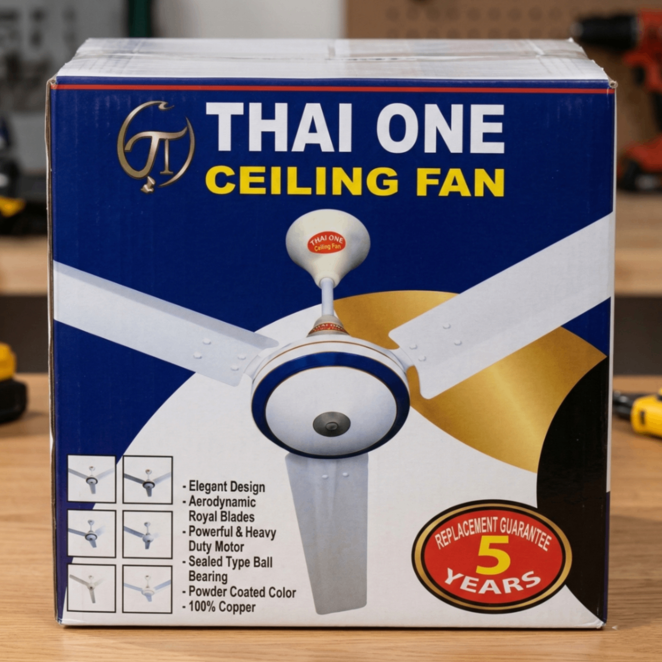 The Thai One Ceiling Fan is a high-performance cooling solution designed for durability and efficiency.