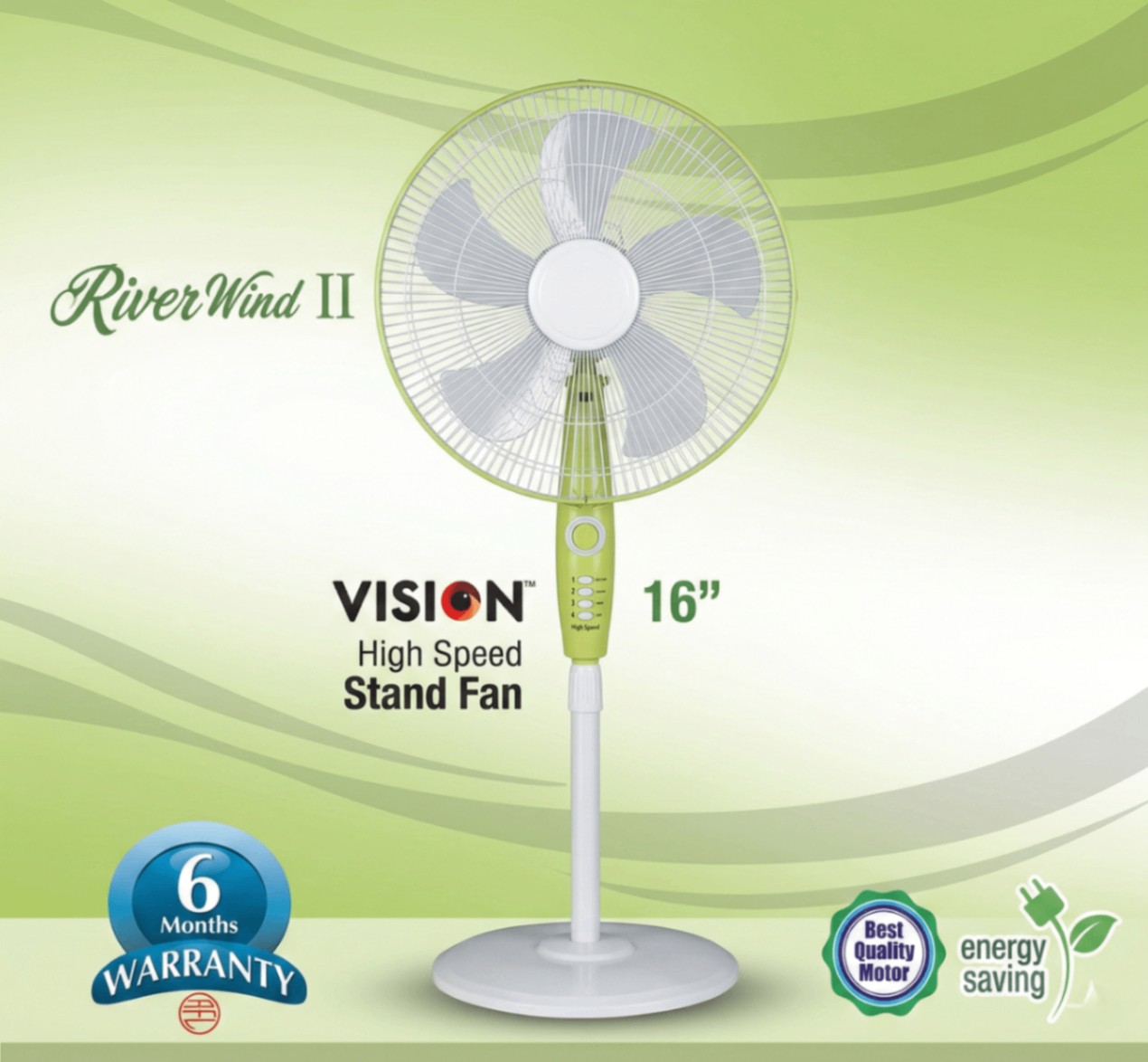 Keep your space cool and comfortable with the VISION RiverWind II 16" Stand Fan. Featuring a high-speed motor and five aerodynamic blades, it delivers powerful air circulation while remaining remarkably energy-efficient.