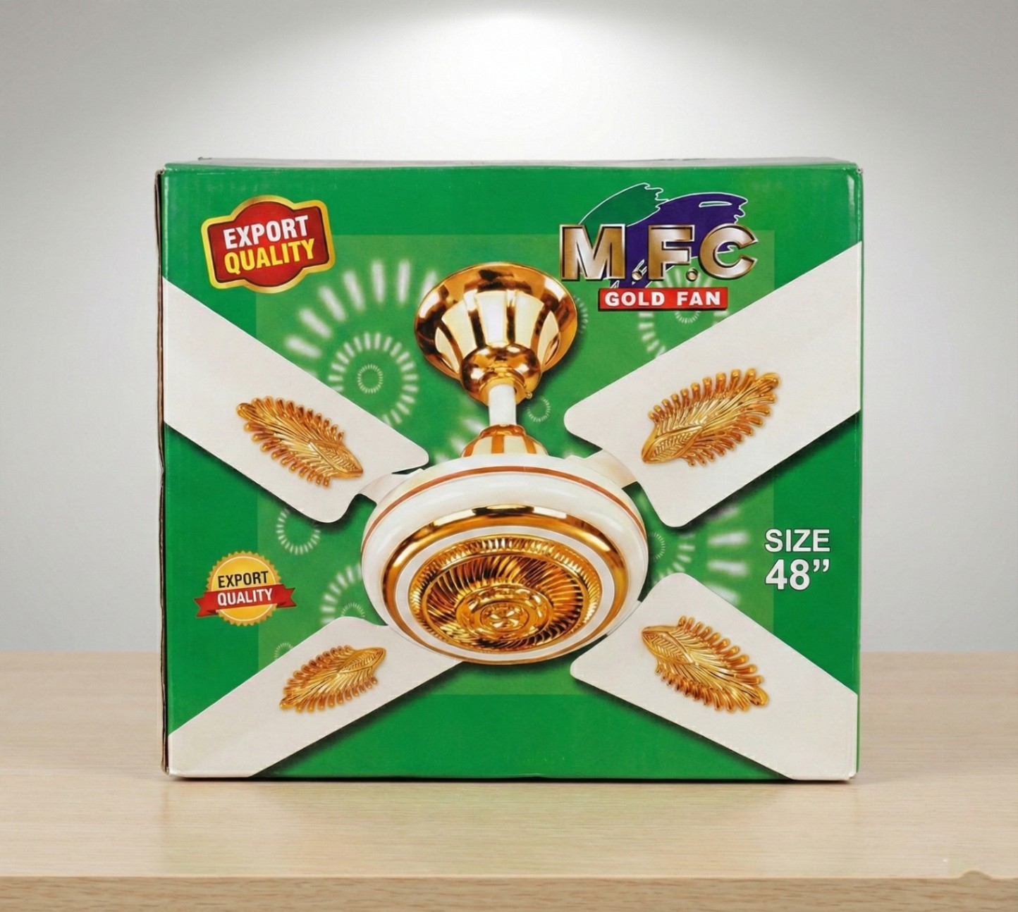 Luxurious 4-blade fan featuring gold accents. Premium export quality cooling.