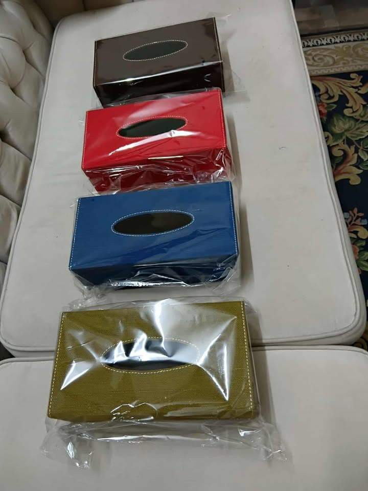Sleek, rectangular tissue box available in four distinct colors, featuring a premium textured finish and elegant contrast stitching.