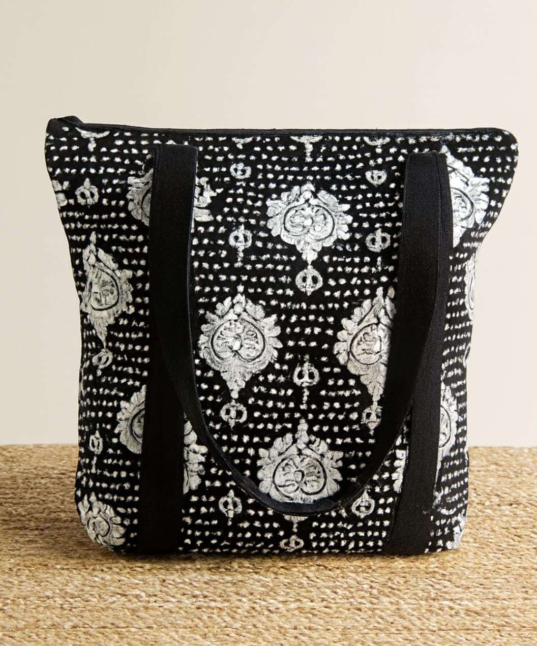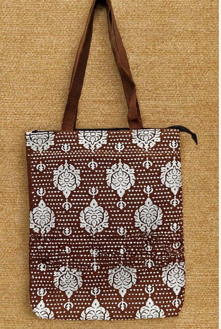 Bucket Tote Bag Printed in jamdani motif. Material- 100% jute.